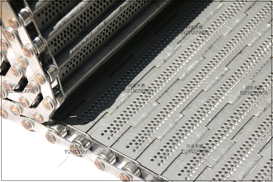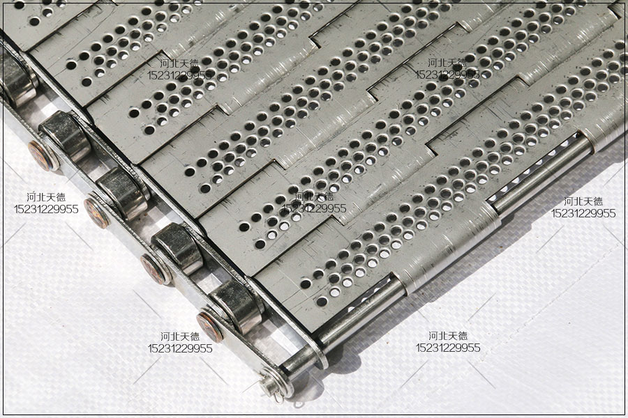 這款鏈板輸送帶采用不銹鋼304鋼板折彎沖孔完成的,所有尺寸都是根據(jù)客戶的的要求來生產(chǎn)加工的。