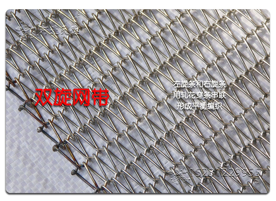 螺旋網帶:使用曲軸或直軸串條將左旋和右旋繞絲串起來形成平衡編織。