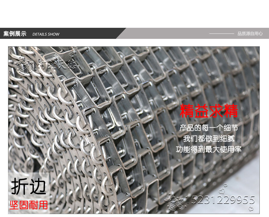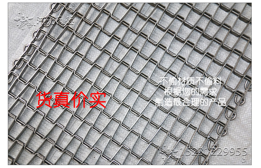 長城網帶材質:有A3低碳鋼、45#鋼、1Cr13耐熱鋼、 不銹鋼、304不銹鋼、1Cr18Ni9Ti不銹鋼、0Cr18Ni14NO2CU2耐熱耐酸鋼等