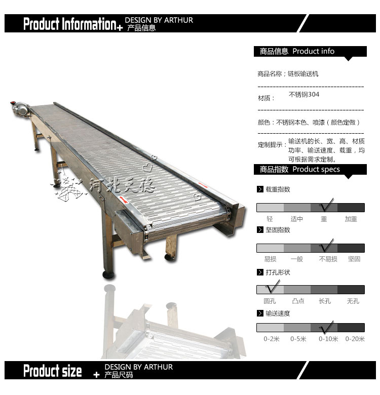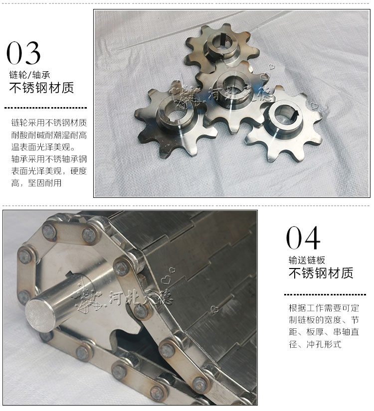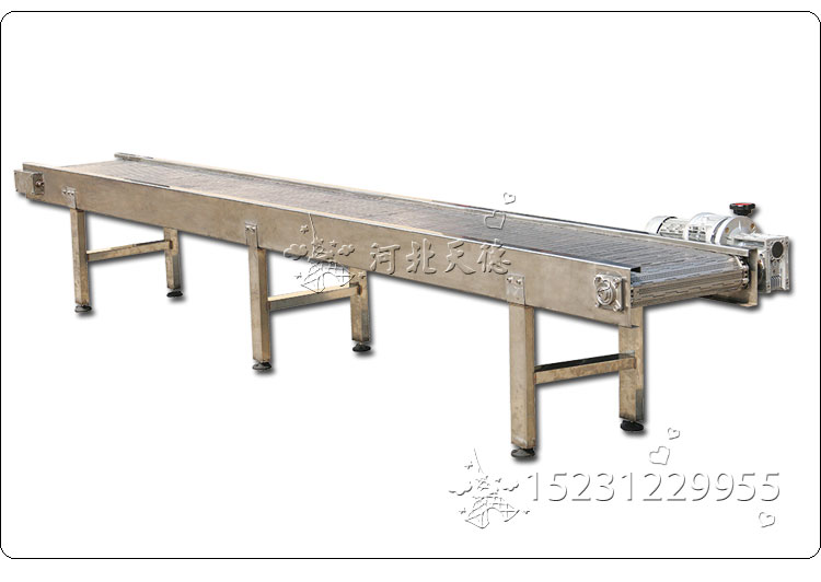 不銹鋼鏈板輸送機(jī):采用金屬鏈板網(wǎng)帶作為輸送載體。驅(qū)動(dòng)方式:減速電機(jī)驅(qū)動(dòng)。